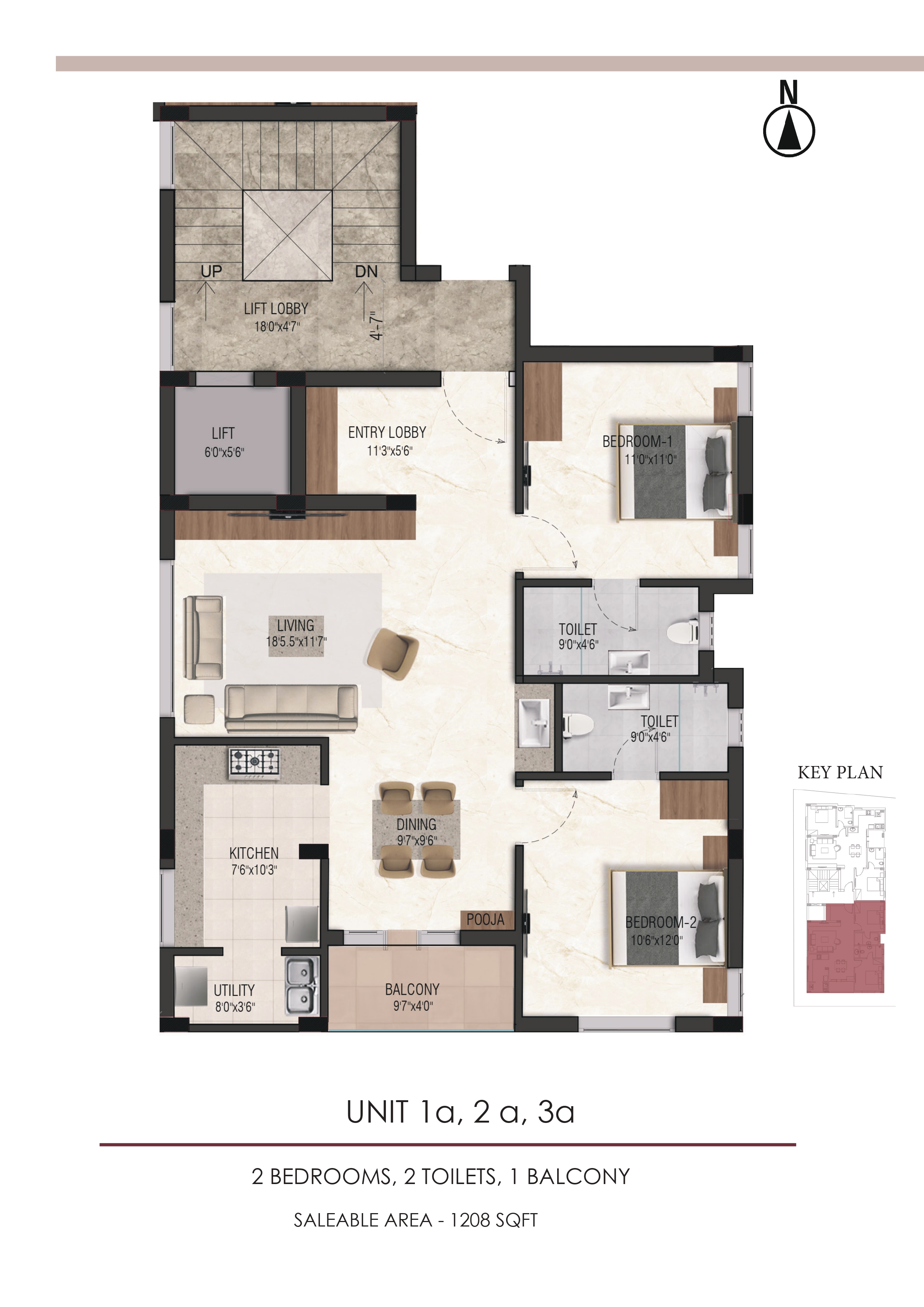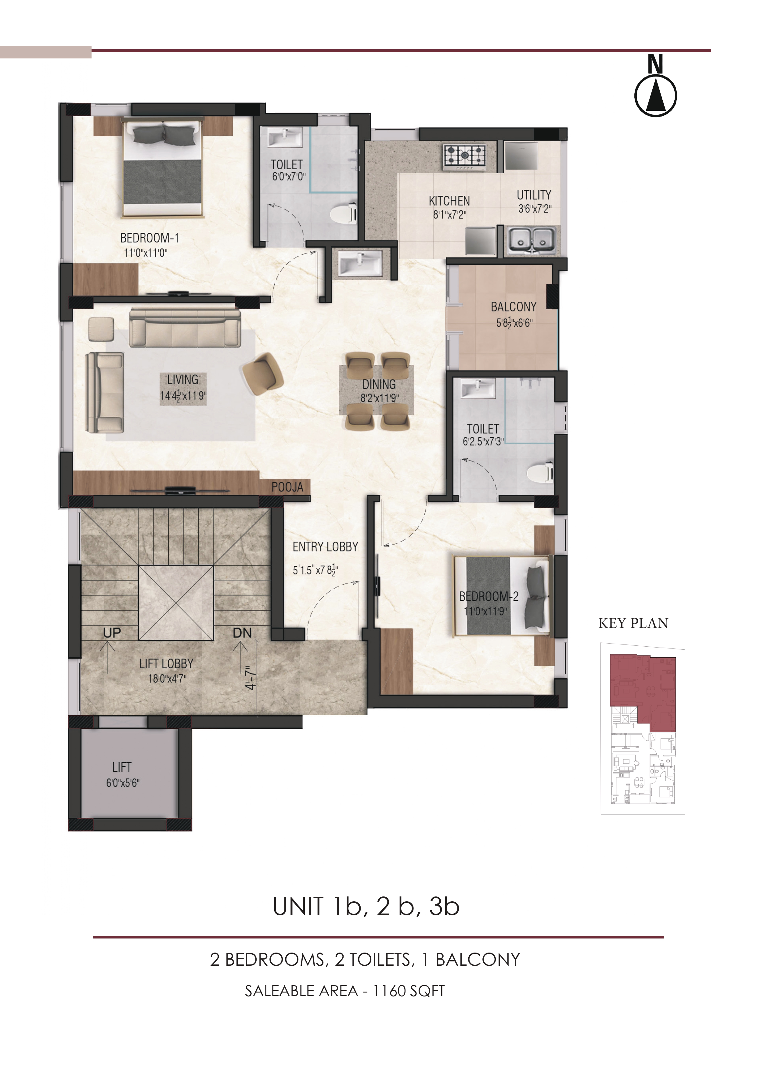 2 Bedrooms, 2 Toilets, 1 Balcony